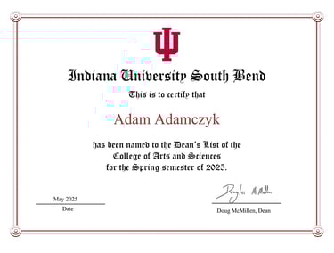 Recognized for maintaining high academic standing during the Fall 2024 /Spring 2025 semester.